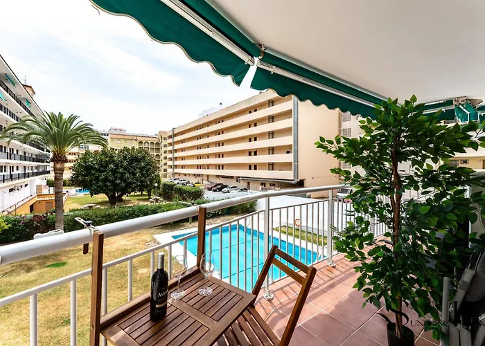 プールの景色を見渡すベッドルーム2室のPerfect Location 3 Bedrooms 2 Bath, Parking, Pool フエンヒロラアパートは、フエンヒロラ アドベンチャー ゴルフからわずか600メートルです。